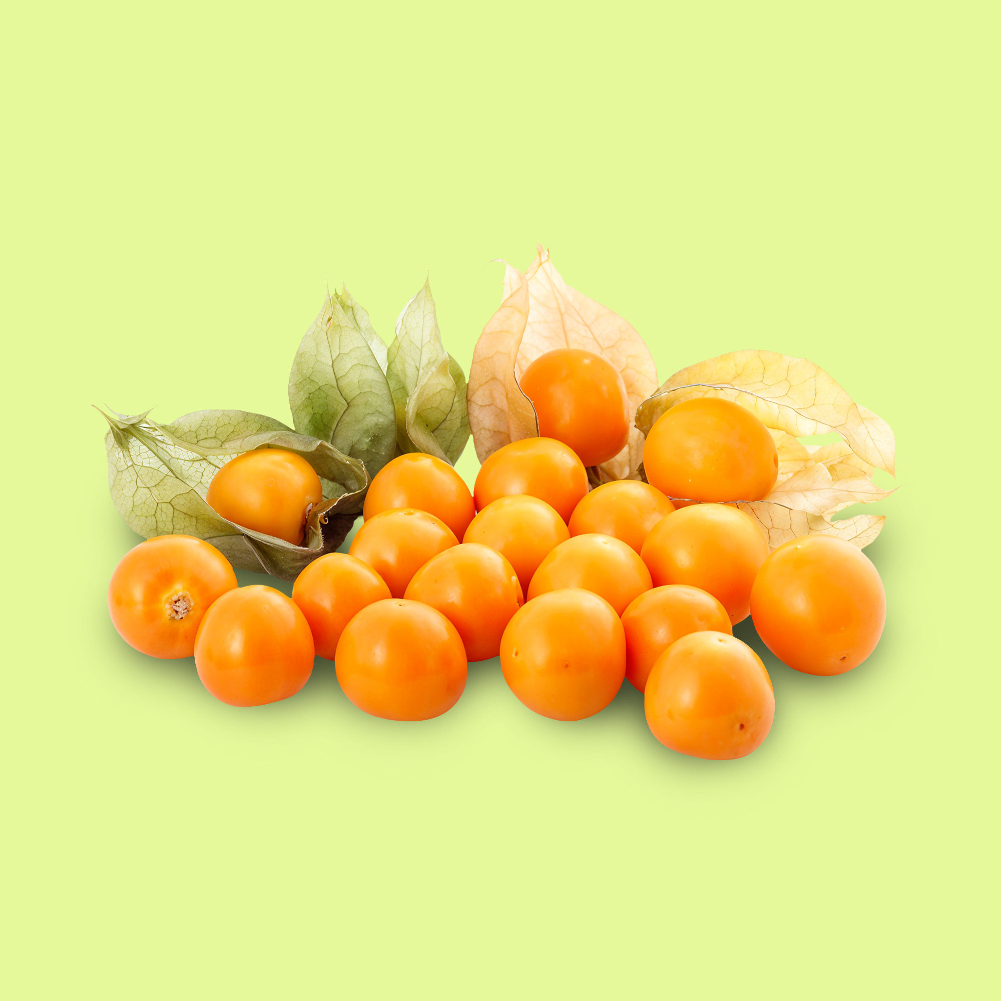 Es un fruto que se caracteriza por su sabor dulce y ligeramente ácido, similar al de una mezcla de frutilla y ananá, o de mango y naranja, es difícil de describir, pero es muy sabrosa. De textura suave. El fruto es de color naranja intenso y se encuentra protegido por una vesícula costillada procedente del cáliz.